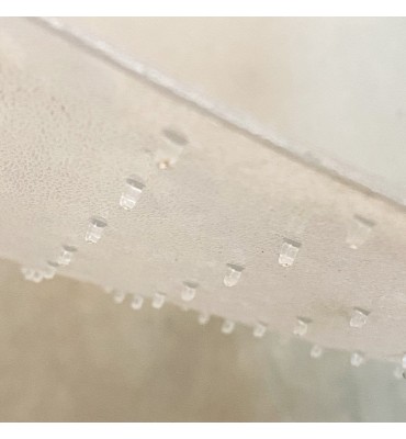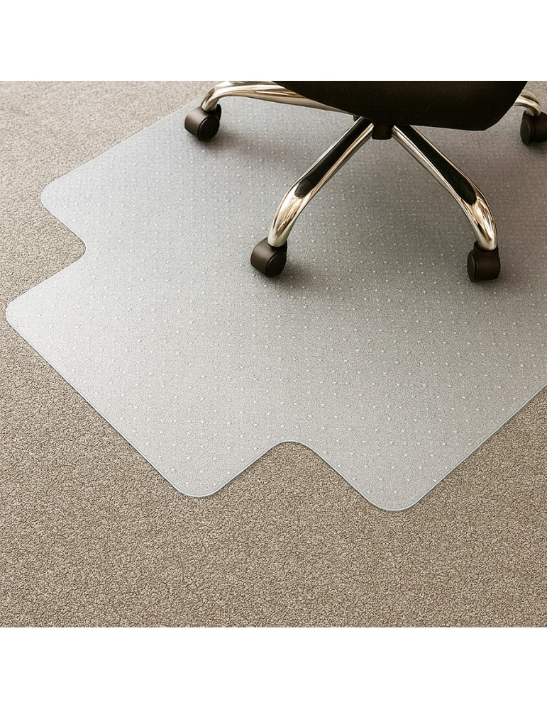 Hecho de PVC de alta calidad, es resistente, antideslizante y fácil de limpiar. Su superficie con tachas para suelo alfombrado mantiene a esta en su lugar mientras se mueve la silla.