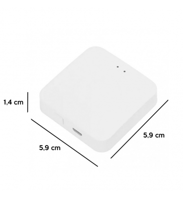 Con conectividad Wi-Fi 2.4G, permite controlar y monitorear sensores desde el celular. Ideal para domótica, se integra fácilmente con SmartLife. Diseño compacto (59mm x 59mm x 14mm), alcance inalámbrico de hasta 50 m. Fabricado en plástico color blanco.