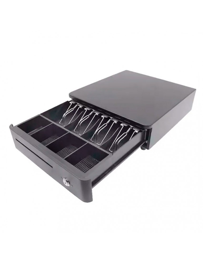 Cuenta con 4 compartimentos para billetes y bandeja extraíble para monedas con 4 divisiones configurables. Posee espacio tanto para billetes como para monedas, permitiendo retirar el compartimento de monedas para colocar billetes debajo. Fabricada en acero laminado en frío con recubrimiento anti polvo y base zincada, soporta más de 1.500.000 operaciones. Incluye cerradura de 3 posiciones, doble ranura y compatibilidad con interfaz RJ11. Funciona con 12V (estándar) o 24V (opcional). Incluye cable RJ11 para conexión tanto de datos como de energía.