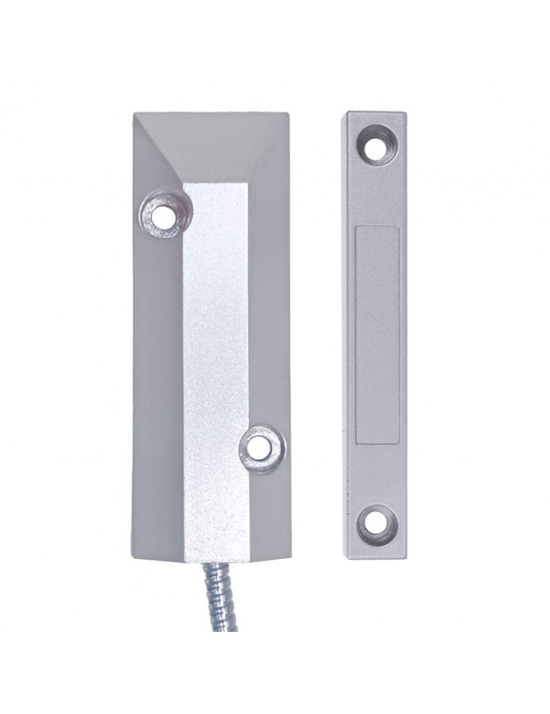 Este dispositivo antirrobo de contacto magnético está diseñado para aumentar la seguridad en puertas grandes y persianas. Esencial para cualquier sistema de alarma eficiente gracias a su interruptor magnético de 12V NC, siendo ideal para persianas enrollables y asegurando durabilidad y resistencia con su fabricación en aleación de zinc.