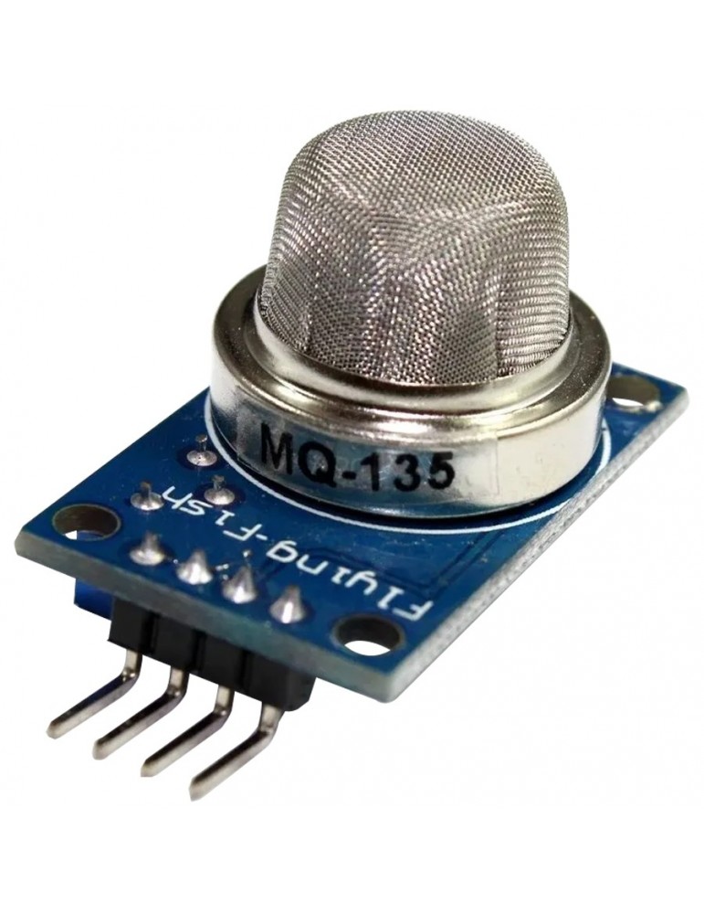 El Módulo MQ-135 es un sensor de calidad de aire diseñado para detectar gases nocivos como amoníaco, óxidos de nitrógeno, CO2, alcohol, benceno y humo.