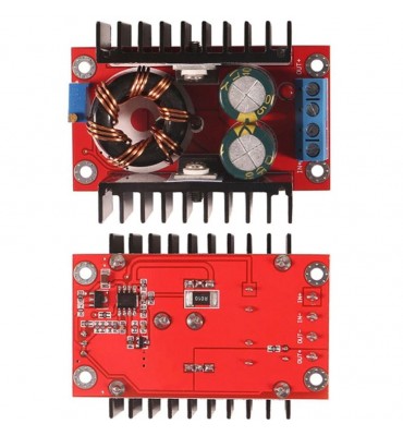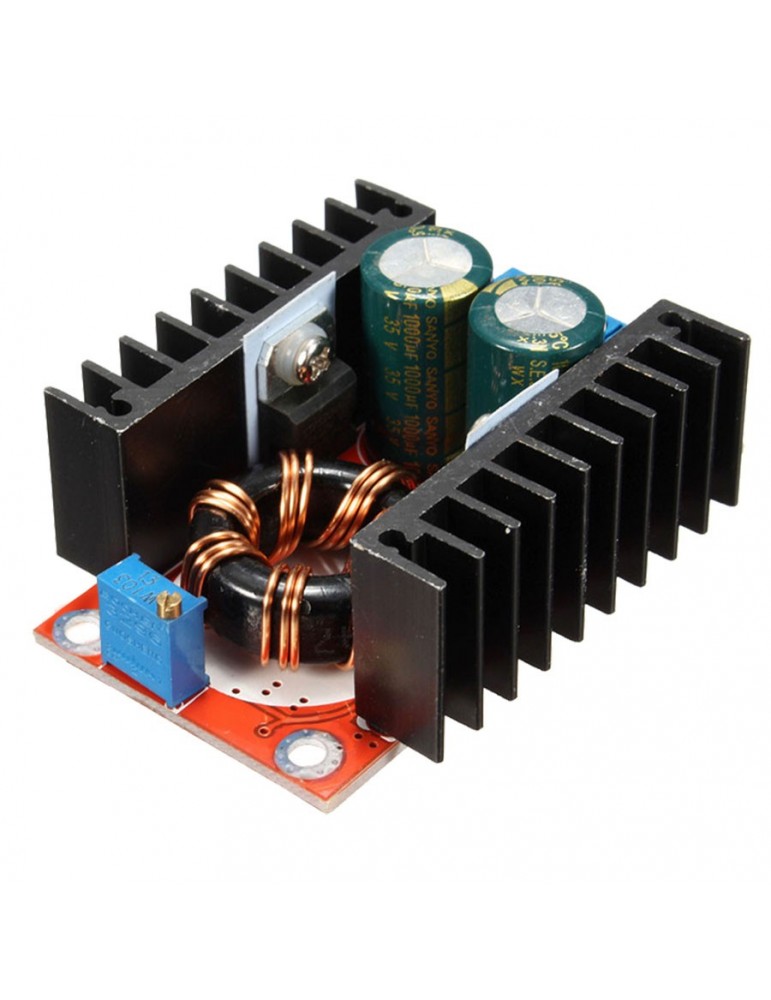 Regulador de voltaje variable tipo buck o step up, permite aumentar el voltaje de forma eficiente. Potencia máxima de 150W. Utilizado en proyectos de robótica para alimentación de motores DC, en el sector automotriz, pues puede trabajar tanto con 12V como hasta 35V.