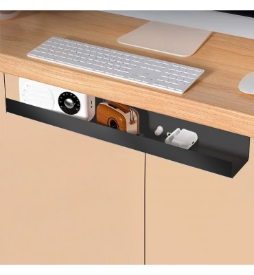La instalación es rápida y práctica, ya que incluye cinta doble faz de alta adherencia. Esto permite colocarlo fácilmente en la parte inferior del escritorio o en superficies lisas, sin necesidad de perforaciones ni herramientas especiales. Su diseño abierto facilita el acceso a los cables en caso de que necesites conectar o desconectar dispositivos.