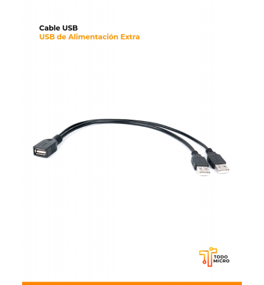 Cable USB en forma de Y sirve para transferencia de datos y una mayor alimentación. Conectando Ambos USB tiene una salida con mayor amperaje que un USB normal. Muy utilizado cuando necesitas conectar cámaras, antenas wifi, entre otros por medio de USB a distancias muy largas y requieren de cierto nivel de amperaje.