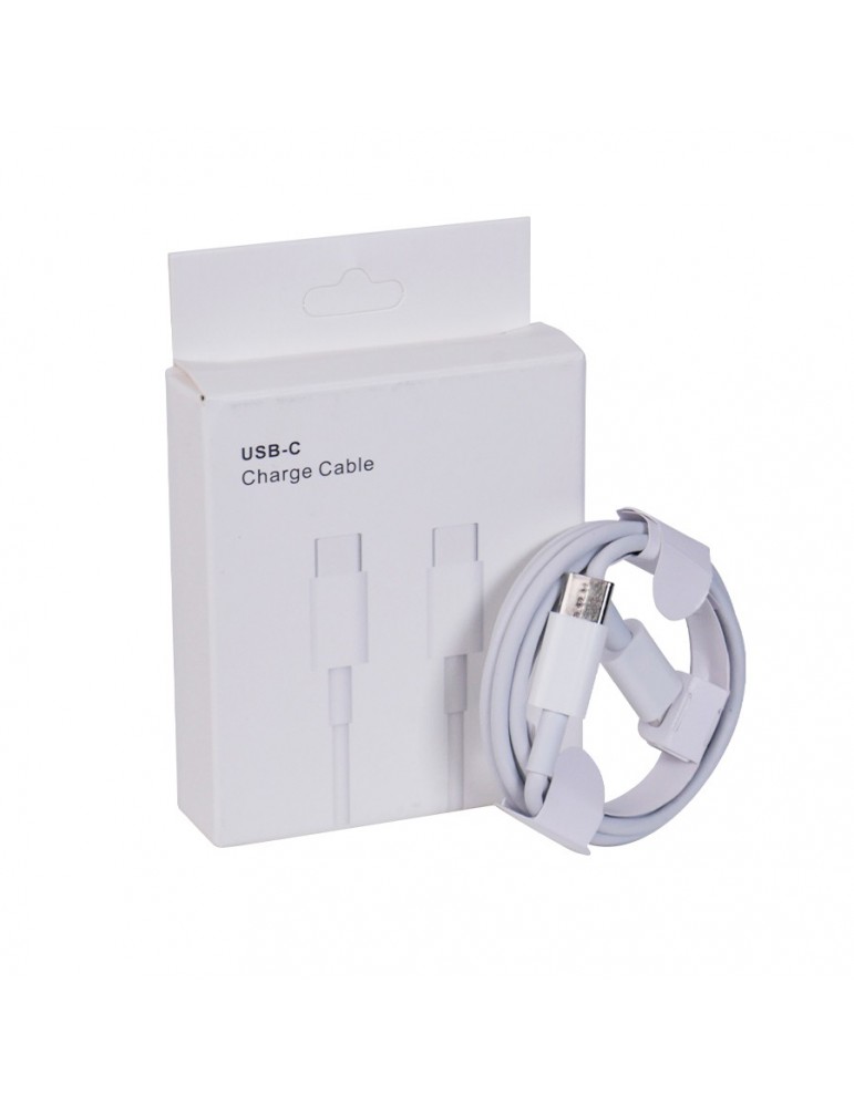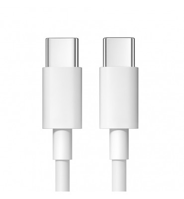Cable de Datos y Carga Tipo C a USB-C de 1 metro, color blanco, diseñado para ofrecer carga rápida y transferencia básica de datos.